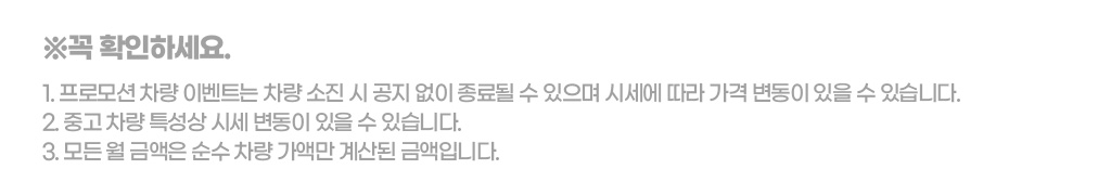 본 광고 상품은 중고 차량 특성상 시세 변동이 있을 수 있으며, 상담 결과에 따라 금액이 달라질 수 있습니다.